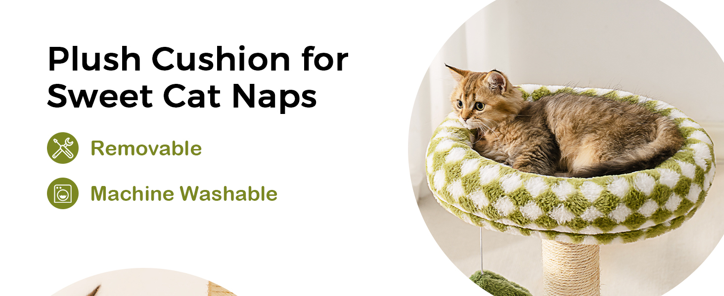 - Plush Cat Bed: The top includes a comfortable 16.5'' x 12.6'' cat bed, giving your furry friend ample space to stretch and relax.The optimal height offers great views for bird-watching and sunbathing.Removable and machine washable for easy care