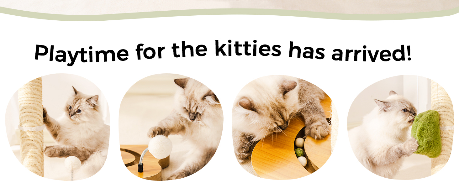 - Ideal Cat Playground: This multi-functional cat tree features scratching posts, hanging toys, an interactive cat ball track, and cozy resting spots.Perfect for multiple cats, it offers an engaging scratching experience, comfortable lounging areas, and endless entertainment