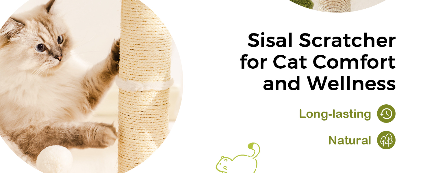 - Premium Sisal Rope: Crafted from sturdy wood and sisal rope, this vertical scratching post provides a soft buffer for your cat’s claws.Built to withstand hours of play